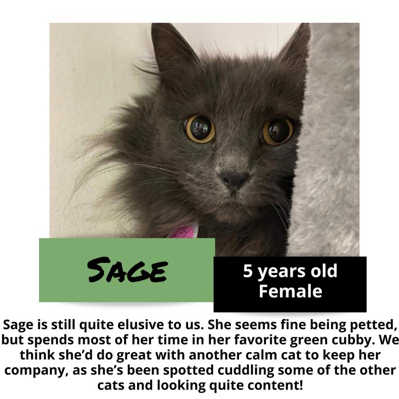 Here are some of the cats you may meet during your visit! Listed cats are subject to change without notice.